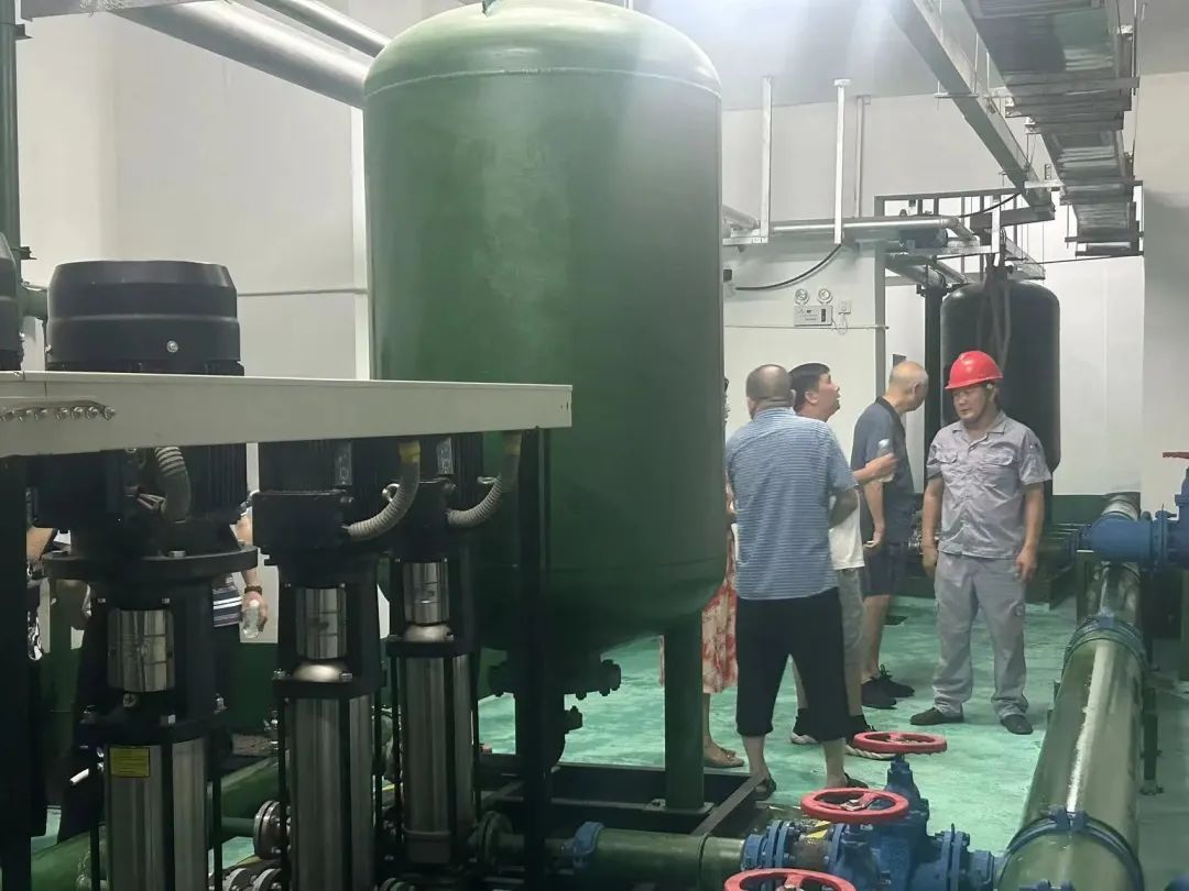 飲水思源,生活加壓水泵房是為業(yè)主提供生活用水的關(guān)鍵場所。在生活水泵房,業(yè)主們參觀了水泵設(shè)施設(shè)備的維保情況。工程師傅詳細講解了供水設(shè)備的配置和功能,并耐心的為業(yè)主答疑,生活水箱房擔負著中高層生活供水的重任,保證水泵設(shè)備良好運行,定期進行水箱清洗、水樣檢測,才能從源頭解決小區(qū)的平穩(wěn)供水,安全用水問題。