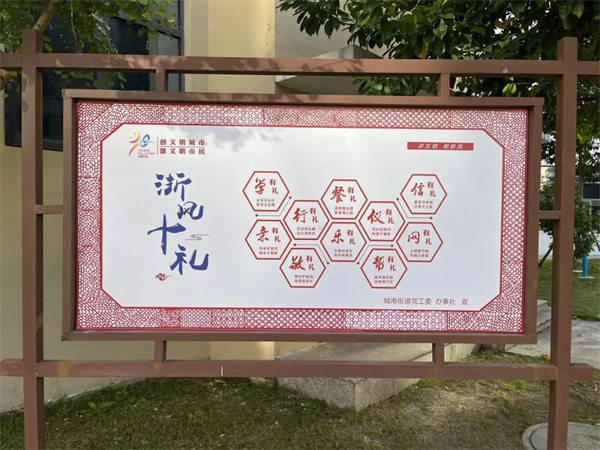 規格統一,色調一致,公益廣告干凈整潔,小區的文明程度,折射出我們城市的文明程度,人才大廈、天豪公寓的各個角落充滿著“公益宣傳好”的影子。